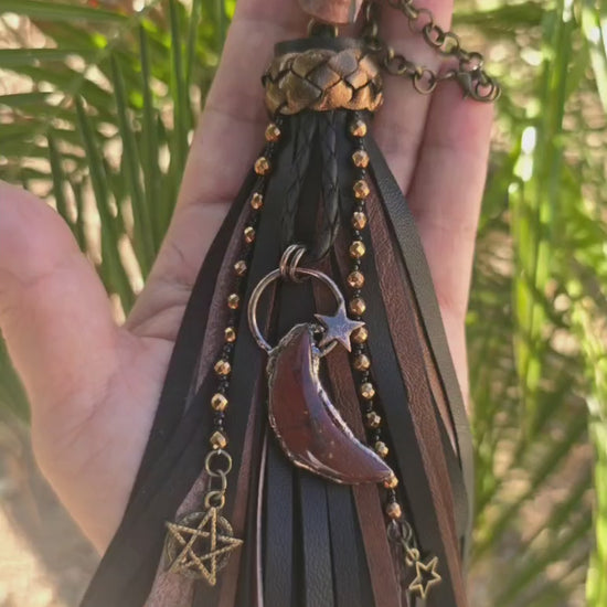 7" Carved Skull Leather Tassel