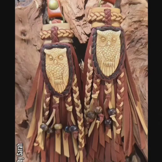 * Carved Buffalo Bone Owl focals set on laced leather and braided leather ball.